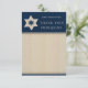 Navy Blue and Tan Thank you notes for the Bar Mitzvah gifts. The words "Thank you!" are in a strong masculine font. The Bar Mitzvah's name is easy to customize (font, color and size!) Tan and Navy Blue Star of David design pops on the front of the thank you note. Bottom portion has soft tan background with plenty of room to write your special notes. Back of thank you note shows the tan background with navy blue and silver stripes.