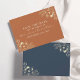 This rustic, elegant, and boho navy blue and terracotta Wedding Save The Date invitation features boho gold flowers, making it the perfect choice for a fall wedding. A beautiful blend of earthy tones and chic style to set the tone for your special day.