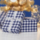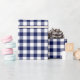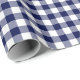 A wrapping paper designed with a navy blue and white check plaid pattern. Customize the white background among other options.