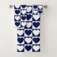 Navy Blue and White Checkered Pattern With Hearts Bath Towel Set