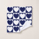 A bath towel set built with a navy blue and white checkered pattern with hearts. Customize the white background color among other options.
