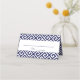 Navy Blue and White Diagonal Greek Key Pattern Place Card