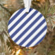 Navy Blue and White Diagonal Stripes Pattern Ornament