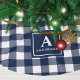 Navy Blue And White Gingham Plaid Monogram Brushed Polyester Tree Skirt