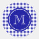 Navy Blue and White Gingham, Your Monogram Classic Round Sticker