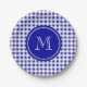 Navy Blue and White Gingham, Your Monogram Paper Plates