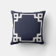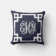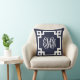 Navy Blue and White Greek Key Script Monogram Throw Pillow