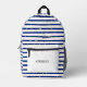 Navy Blue and White Marine Stipes Modern Monogram Printed Backpack