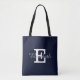 Navy blue and white monogram bridal tote bag