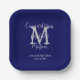 Navy Blue and White Monogrammed Graduation Party Paper Plates