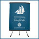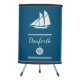 Elegant dark blue and white design with a nautical theme. Personalize your name in the template. Decorated with a sailboat gliding by, and a navigation icon.