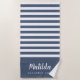 blue and white personalized gift beach towel design. Modern, graphic design. Ideal for bachelorette party, bridal shower parties, wedding, vacation or honeymoon.