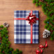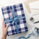 A wrapping paper designed with a navy blue and white plaid pattern in large size. Customize the white background among other options.