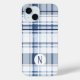 This sophisticated phone case showcases a traditional navy blue and white plaid pattern, offering a clean and polished look suitable for any occasion. The deep navy tones contrast beautifully with the bright white, creating a bold yet classic appearance. The intricately woven plaid design features varied line thicknesses that intersect to form a balanced grid, adding structure and style to your phone. The customizable monogram in the center allows for a personal touch, making it a perfect gift or a stylish accessory for yourself. Ideal for those who appreciate a mix of elegance and durability, this case provides both protection and a timeless design that works well in all seasons, particularly during fall and winter.