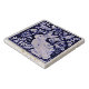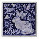 My original, copyrighted blue and white rabbit and bird tile is beautifully adapted on a stone marble or travertine trivet with cork backing.