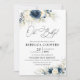 Navy Blue and White Roses Baby Shower Invitation