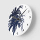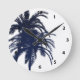 Navy Blue and White Tropical Palm Tree Round Clock
