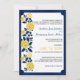 Plain white envelopes are included with paper invitations and will come to fit the invitation size you select. If you don’t need the envelopes, you may choose to not receive them by selecting the dropdown below "Envelopes" and choosing "None." If you’d like to have a design on your envelopes, you can browse all of these available envelopes to find the design that complements your Navy Blue And Yellow Floral Wedding Invitation.