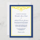 Plain white envelopes are included with paper invitations and will come to fit the invitation size you select. If you don’t need the envelopes, you may choose to not receive them by selecting the dropdown below "Envelopes" and choosing "None." If you’d like to have a design on your envelopes, you can browse all of these available envelopes to find the design that complements your Navy Blue And Yellow Flourish Wedding Invitation.
