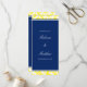 An elegant yellow and navy blue wedding program. Featuring a modern flourish swirl damask pattern. Easily personalize for your event.