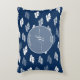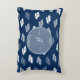 Navy Blue Antique Leaves Pattern Monogram Accent Pillow