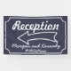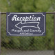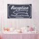 A simple reception direction banner with a chalkboard feel. I chose "something blue" as the background color though it can be easily changed by pressing the "Edit this design" button. You can add your wedding hashtag or remove to have none. If your reception is pointing right, there is a matching "wedding" banner that you can customize too. Congratulations to the happy couple!