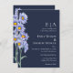 Navy Blue Aster Flowers Wedding Invitation
