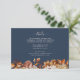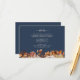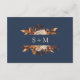 Navy Blue Autumn Details Enclosure Card. Perfectly complementing the "Navy Blue & Terracotta Fall Wedding Invitations," this details enclosure card brings your guests the information they need in a beautifully designed format. Hand-painted florals in burnt orange, terracotta, and copper tones against a navy blue background create an elegant presentation. Set the tone for an organized and thoughtful celebration, leaving no detail overlooked.