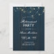 Navy blue painted rustic barn boards and string of lights for a special retirement luncheon.