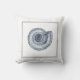 A traditional beach decor pillow with square border and central solarium shell from an antique etching.