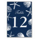 Navy Blue Beach Theme Seashells Table Numbers Table Cards.