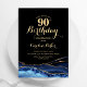 Navy Blue Black Gold Agate Marble 90th Birthday Invitation
