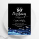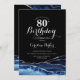 Navy Blue Black Silver Agate 80th Birthday Invitation