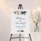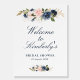 A floral wedding design with beautiful navy blue and blush pink watercolor flowers. The text and colors on this sign poster can be edited.
