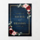 Dark navy blue burgundy floral geometric wedding Invitation featuring elegant bouquet of navy blue, royal blue , white , blush, burgundy, marsala rose and sage green eucalyptus leaves and elegant gold glitter geometric neutral frame. Please contact me for any help in customization or if you need any other product with this design.