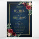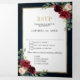 Dark navy blue burgundy floral geometric wedding Invitation featuring elegant bouquet of navy blue, royal blue , white , blush, burgundy, marsala rose and sage green eucalyptus leaves and elegant gold glitter geometric neutral frame. Please contact me for any help in customization or if you need any other product with this design.