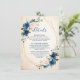 Watercolor Navy Blue Royal blue blush pink Floral Rustic country Boho barn wood Modern geometric Wedding Details Card with gold geometric frame. Perfect for a fall wedding. The design features a stunning bouquet of Navy blue blush flowers / roses with matching leaves. Please find more matching designs and variations in my "blissweddingpaperie" store. And feel free to contact me for any custom requests.