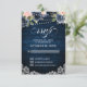 Navy Blue Blush Floral Rustic String Light RSVP Card