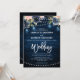 Navy Blue Blush Floral Rustic String Light Wedding Invitation