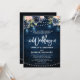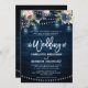 Navy Blue Blush Floral Rustic String Light Wedding Invitation