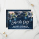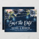 Watercolor navy blue blush pink rustic country classy chic floral design with string lights and mason jars save the date invitation card template with sage green botanical foliage and eucalyptus leaves in wooden background. This beautiful easy to customize design can match easily with your wedding colors, styles and theme and it is a perfect choice for fall midsummer or winter rustic country weddings. You can find more matching designs from my store or contact me if you need any help in design customization.