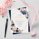 Navy Blue Blush Floral Wedding Geometric Gold Foil Invitation