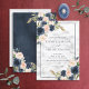 Navy Blue Blush Pink Floral Watercolor Script Invitation