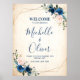 Navy Blue Blush Pink Florals Wedding Welcome Poster