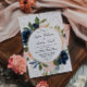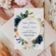 Navy Blue & Blush Pink Flowers Wreath Wedding Invitation