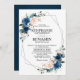 Navy Blue Blush Pink Rose Boho Geometric Wedding Invitation