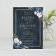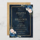 Navy Blue Blush Pink Rose Boho Geometric Wedding Invitation