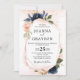 Navy Blue Blush Pink Rose Boho Geometric Wedding Invitation