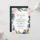 Navy Blue Blush Pink Rose Boho QR Code Wedding Invitation