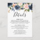 Navy Blue Blush Pink Rose Boho Wedding Details Enclosure Card